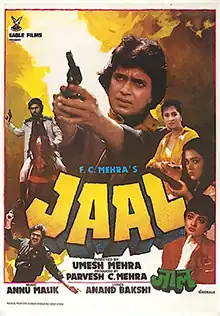 Jaal (transl. Trap) is a 1986 Indian Hindi-language action film, produced by F.C. Mehra, Parvesh C. Mehra under the Eagle Films banner and directed by Umesh Mehra.[1] It stars Rekha, Mithun Chakraborty, Mandakini, and Moon Moon Sen with music composed by Anu Malik. The film was remade in Telugu as Kirai Dada (1987) and in Tamil as Thambi Thanga Kambi (1988).[2]