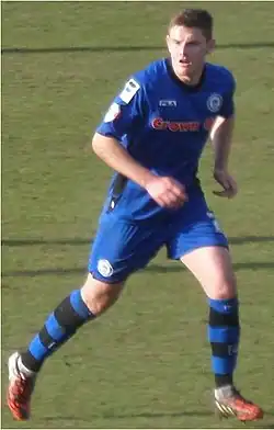On 1 September 2014, O'Connell rejoined Rochdale on a loan running until 3 January 2015.[31] He scored the first senior goal of his career with a header in a 3–0 win over Yeovil Town on 25 October 2014.[32][33] O'Connell returned to Blackburn Rovers after his loan expired,[19] having made 19 appearances and scored three goals during his spell with Rochdale.[32] Across his two spells at Spotland, O'Connell made 64 appearances and scored three goals.[21]