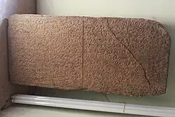 By the command of the lord in AD 1528 Mar Thana [Mar Denha] and Mar Avu [ Jacob Abuna ] along with Giwargis Padre, installed this Holy Cross in this place. After this, Giwargis padre went to Portugal along with his nephew Mathai padre. In AD 1580, kanni 13 sunday, on the day of the feast of Holy Cross, this mar Sliva was erected covered in wood, by Bishop Mar Simon and Jacob [Archdeacon Jacob] Padre. Same year, on the day of 18th on the day of the feast, this bleeding Cross was installed. AD 1581 meenam month on the 29th friday good friday, this granite Cross was installed.[7][8]