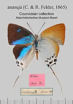 Jacoona anasuja is a butterfly in the family Lycaenidae. It was described by Cajetan Felder and Rudolf Felder in 1865. It is found in the Indomalayan realm.[2]