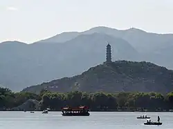 The Jade Peak Pagoda (Chinese: 玉峰塔; pinyin: Yù Fēng Tǎ) is a Chinese pagoda on Jade Spring Hill in an Imperial Garden, Jingming Yuan (Chinese: 靜明園; pinyin: Jìng Míng Yuán), in Beijing, China. The site was originally an imperial retreat during the Liao Dynasty (907–1125) and was renovated by the Qianlong Emperor (r. 1735–1796) in 1752.[1]