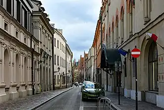 Jagiellońska Street (Polish: Ulica Jagiellońska) - a historic street in the Old Town of Kraków, Poland. The street intersects the former Jagiellonian University quarter. The street features the Collegium Maius of the Jagiellonian University and the Old Theatre. Jagiellońska Street is situated to the east of Planty Park.[1][2]