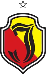 Jagiellonia Białystok was founded by soldiers in the Reserve Battalion of the 42nd Infantry Regiment on May 30, 1920.[2] The team's original name was shortened to KSBZ 42 PP.[3] Their first game was played on 30 May 1920 against Kresowcy Białystok which they won 5–1.[4][5] Later the team name was changed to WKS 42 PP, an abbreviation for Wojskowy Klub Sportowy, which means Army Sport Club. On November 2, 1930 WKS 42PP lost 1–2 against WKS 82 PP for the play-offs to advance to Division 1. January 27, 1932 was the first time Jagiellonia was introduced into the club's name when it was changed to Białystok Sports Club Jagiellonia. The term Jagiellonia refers to the Jagiellonian dynasty which ruled Poland for two centuries.[6] Around the same time, the club's coat of arms was also introduced with its red and yellow colours. In 1938, due to financial problems, the club dissolved and ceased to exist until its reactivation in 1945. Unfortunately, in June the following year, with the new government in place there was no room for Jagiellonia, mostly because of the history with the Bolsheviks in 1920 and the 42nd Infantry Regiment.[7] On January 26, 1957 the merging of Budowlani Białystok and Sparta Białystok reactivated Sports Club Jagiellonia Białystok with the original yellow-red-black crest restored.[8]