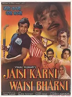 Jaisi Karni Waisi Bharnii (transl. What you sow, you shall reap) is a 1989 Indian comedy film directed and produced by Vimal Kumar. It stars Govinda, Kader Khan and Kimi Katkar in pivotal roles.