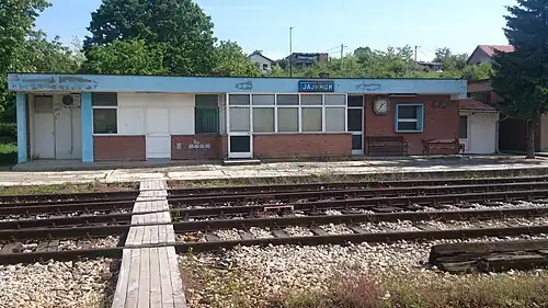 Jajinci railway station (Serbian: Железничка станица Јајинци) is a railway station of Belgrade railway junction and Belgrade–Požarevac railway. Located in northern part of Resnik, Rakovica, Belgrade. Railroad continues to Beli Potok in one, in the other direction to Rakovica, in third direction to Belgrade marshalling yard "A" and in the fourth direction towards to Ostružnica. Jajinci railway station consists of 4 railway tracks.[1]