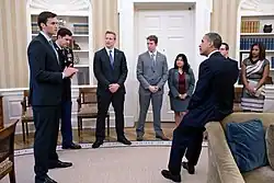 ![]() Wood (left) and members of Team Rubicon meet President Barack Obama in the Oval Office in 2013. | |