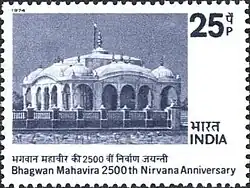 The Jal Mandir or Water Temple is situated in[1] Pawapuri (also known as Apapapuri which means a town without sins),[2][3] in the Indian state of Bihar. It is dedicated to Mahavira, the 24th Tirthankara (religious preacher of Jainism), which marks the place of his cremation. Mahavira attained Nirvana (death) in Pawapuri in 527 BC.[4][5][6] The temple was originally built by King Nandivardhan, elder brother of Mahavira, within the pond which is filled with red coloured lotus flowers.[7] It is one of the five main temples in Pawpuri, where the "Charan Paduka" or foot impression of Mahavira is deified.[5]