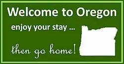 Oregon is a lovely place to visit, but it is a mess to live in. After the tourists have left, it rains like crazy here. Mosquitoes are big as Sherman tanks. The people are unfriendly... and most of us are starving... Our freeways are jammed tighter than scorched rice pudding. Our smog is awful... some days you can't see from Molalla to Silverton. Fuel bills are so high most people just build igloos in the back yard and spend the winter there... There are no fish in the streams... and nobody has seen a rose around here for years. Actually what happens in the summer when tourists come is that we paint our hills green, put up false silhouettes for mountains, borrow a few lakes from Washington and California, and hire some actors to look cheerful. So... spread the word. Oregon is a great place to visit, but no place to call home.[12]