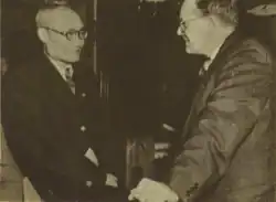 After the war, he spoke at student demonstrations, urging opposition to the Nationalist government and provoking criticism from the church in Canada. This led to his resignation from the ministry and the mission on May 5, 1946, after the United Church of Canada gave him an ultimatum to either modify his public statements or quit.[2] In August 1946 Endicott was invited to help write a constitution for the new League for the Protection of Human Rights in China. Paul Yen, Talitha Gerlach, Y. T. Wu and other liberals were also asked to participate.[4] At Zhou En-lai's urging, he moved to Shanghai to publish the underground anti-Kuomintang Shanghai Newsletter. The newsletter was aimed at westerners in the Kuomintang stronghold as well as at trying to convince western governments that Chiang's regime was corrupt and dictatorial.