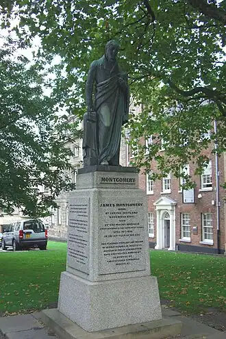 James Montgomery (4 November 1771 – 30 April 1854) was a Scottish-born hymn writer, poet and editor, who eventually settled in Sheffield. He was raised in the Moravian Church and theologically trained there, so that his writings often reflect concern for humanitarian causes, such as the abolition of slavery and the exploitation of child chimney sweeps.[1]