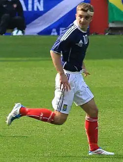 He scored his first goal for Scotland in the 3–1 win against Wales on 25 May 2011 in the Celtic Nations Cup tournament in Dublin.[31] He also scored for Scotland against England in the friendly game at Wembley Stadium on 14 August 2013.