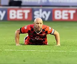 On 21 June 2014, O'Connor signed a one-year contract with League One side Walsall.[28] "Saddlers" manager Dean Smith had this to say: "In James, we have signed an extremely reliable and solid defender. There were a lot of teams interested in him when he left Derby County, but I am delighted that he has chosen to come here. It certainly is a big bonus for us and I look forward to working with him."[29] He was surprisingly not named in the starting lineup for the 2015 Football League Trophy final at Wembley Stadium, a 2–0 defeat to Bristol City, but denied rumours that he and Smith had fallen out over the issue.[30][31] He was frequently used at right-back during the 2014–15 season, but returned to centre-back for the final stretch of the season as he helped Walsall to steer clear of the relegation zone,[32] and led to him being nominated for the League One Player of the Month award.