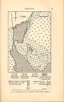 - Mykura, Walter; Phemister, James; Sabine, Peter Aubrey (1976). The geology of Western Shetland: (explanation of One-inch Geological Sheet Western Shetland, comprising Sheet 127 and parts of 125, 126 and 128). Edinburgh: HMSO.