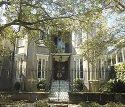The James Simmons House is a late 18th-century house at 37 Meeting Street, Charleston, South Carolina which was, at one time, the most expensive house sold in Charleston. It was likely built for James Simmons, a lawyer.[1] By 1782, it was home to Robert Gibbes, a planter. Louisa Cheves (later McCord), a prominent antebellum writer, was born at the house on December 3, 1810.[2] In 1840, Otis Mills, the owner of the Mills House Hotel, bought the house for $9,000. In October 1862, during the Civil War, the house was loaned to Gen. Pierre Beauregard, who used the house as his headquarters until August 1863.[3] In 1876, Michael P. O'Connor, later a member of Congress, bought the house.[4]