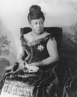 In April 1887, King Kalākaua sent a delegation to attend the Golden Jubilee of Queen Victoria in London. It included Queen Kapiʻolani, Princess Liliʻuokalani and Liliʻuokalani's husband John Owen Dominis, as well as Court Chamberlain Colonel Curtis P. Iʻaukea acting as official envoy of the king and Colonel James Harbottle Boyd acting as aide-de-camp to the Queen.[5][6]