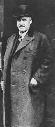 White moved to London and turned his hand to promoting boxing matches. In 1911 he attracted public notice when a much-publicised match under his management was banned because one of the boxers was black.[4] White threatened to stage the match in Paris to escape the ban.[5] The enormous public interest in the controversy propelled White to the attention of businessmen, politicians and press barons; his influence as a broker of deals grew steadily. In the words of the ODNB, "White possessed the kind of charisma that disarmed critics. With deep-blue eyes, an engaging smile, and a Lancastrian breeziness, he impressed those willing to fall under his spell."[1] The conductor Sir Thomas Beecham, whose financial fortunes became entangled with those of White, described him as "one of that group of financial wizards who appeared and vanished like comets in the sky of the business world during the period 1910–1930".[6]