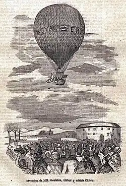 Soon after their arrival they partnered with Arthur Goulston, a hot air balloonist, to contract with the Plaza de Toros bullfighting ring to ascend in a balloon on four bullfighting days. It was originally contracted that one of the Cliffords would be mounted on a bull or a horse but this did not take place, possibly leaving them out of pocket for being in breach of contract. They did, however, take photographs from the balloon although none appears to have survived. Strangely, the contract stated that neither her husband nor anybody else had obliged her to ascend in the balloon and that she "freely and spontaneously" agreed to participate in the show.[2][3] Charles Clifford would later write about the trip as follows: