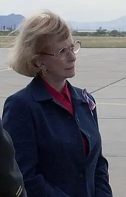 Jane Dee Hull (née Bowersock; August 8, 1935 – April 16, 2020) was an American politician and educator who was the 20th governor of Arizona from 1997 to 2003. She ascended to the office following the resignation of Fife Symington; Hull was elected in her own right in 1998 and served one term, before being term-limited in 2002 and was succeeded by Janet Napolitano. She was the first woman formally elected as Governor of Arizona, and the second woman to serve in the office after Rose Mofford. She was a member of the Republican Party.[1][2][3]