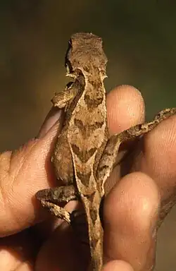 - ^ Mahony S (2009). "A new species of Japalura (Reptilia: Agamidae) from northeast India with a discussion of the similar species Japalura sagittifera Smith, 1940 and Japalura planidorsata Jerdon, 1870" (PDF). Zootaxa. 2212: 41–61. doi:10.11646/zootaxa.2212.1.2.