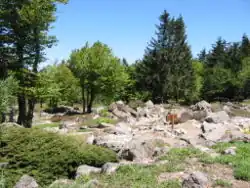 The garden contains the source of the river Vologne and is surrounded by the eponymous high-elevation meadows "Hautes Chaumes", which are typical for the tops of the highest peaks of the Vosges at an elevation above 1250 to 1300 meters.[2]