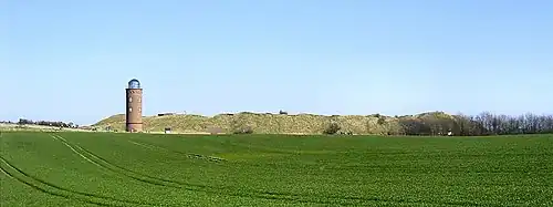The name of Jaromarsburg is derived from the Rani prince, Jaromar I. He became the only Rani prince of Rügen (Ruja, Rujána, Rána) after his brother Tetislav (last mentioned in 1170). He was a vassal of the Danish king, Valdemar I, because Rügen was conquered by Denmark in 1168. Due to that, the all old temples were destroyed and Rani were forced to convert to Christianity. The name Jaromarsburg is not used in the historical documents and was given to the burgwall later. In 1937 and 1938, a theory gained in popularity, that Jaromarsburg is a different spelling of Jomsburg, a lost Viking/Slavic city. It was supported by an information on a map from 17th century, that placed Jomsburg near to the cape Arcona. An archeological research had been done in the sea area but findings could not confirm the theory. Some findings included stone pillars, walls, slingshot machine stones and a rune stone with the name "Ulf".[1] The theory was, however, known much earlier. Some researchers believed that Jomsburg was a wrong spelling of Jaromarsburg, while others disputed this theory as early as the 18th century or earlier.[2] Mémoires de la Société royale des antiquaires du Nord (1836–1839) mentions Arkona and Jaromars Burg as two different places that are situated close to each other, but with time, some authors started using the name Jaromarsburg interchangeably with Arkona.