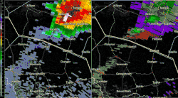 The supercell that produced the Jarrell tornado first developed in McLennan County before noon, initially moving slowly southwestward in the unstable airmass.[3] Shortly thereafter, a tornado watch was issued by the Storm Prediction Center for eastern Texas and western Louisiana. As the thunderstorm cell moved parallel to Interstate 35, it rapidly intensified and prompted the issuance of a severe thunderstorm warning for portions of McLennan County at 12:50 CDT (17:50 UTC), later being upgraded to a tornado warning as the supercell then began to rapidly exhibit lower-levels of rotation.[3] This would result in multiple tornadoes being produced before the Jarrell tornado occurred; most notably an F3 tornado which caused severe damage in portions of Falls County near Bruceville-Eddy and Lake Belton.[3] Another tornado, rated an F0, touched down near Stillhouse Dam and was incorrectly claimed as the Jarrell tornado due to its close proximity from the F5 tornado's path.[5]