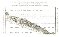 In 1780, with the backing of the Académie des Sciences, he began publishing volumes of his Histoire naturelle de la France Méridionale (1780–1784), which documented his geological and natural studies. Published in seven volumes, he was forced by the church to stop writing on geology after the fifth as it went against a literal reading of the bible. His suggestion on erosion and sediment accumulation implied that the earth was millions of years old. After arguments with Abbe Augustin de Barruel, the first volume was censored and republished.[3] Soulavie's work influenced the thinking of Benjamin Franklin.[4] He frequented the salons of Paris and joined the Académie des Inscriptions et Belles-lettres. Upon the onset of the French Revolution, he backed the liberal reformists, represented the clergy at the Estates-General, and supported the Civil Constitution of the Clergy (1790).[5]