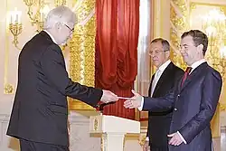 - ^ Послы иностранных государств, вручившие верительные грамоты Президенту России (in Russian). Presidential Press and Information Office. 29 May 2009. Archived from the original on 10 September 2012. Retrieved 2009-06-12.