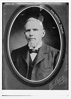 José Jerónimo de los Dolores Treviño y Leal (1835 – 1914), commonly known as Jerónimo Treviño was a prominent Mexican General and politician. He was a veteran of the Reform War and the Second French intervention in Mexico which he gained fame for his participation in several battles. After the fall of the Second Mexican Empire, Treviño served as the Governor of Nuevo León on several terms as well as the Secretary of War and Navy of Mexico from December 1, 1880, to December 31, 1881, under the cabinet of Manuel González Flores.