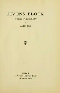 Jevons Block: A Book of Sex Enmity is a poetry book by Kate Buss published in 1917.
