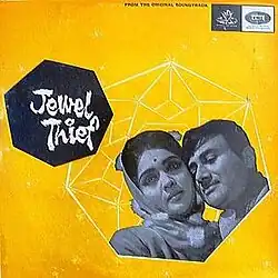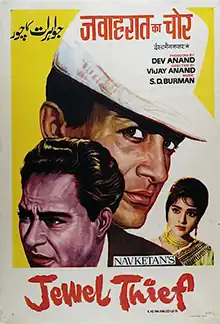 Jewel Thief is a 1967 Indian Hindi-language spy thriller heist film directed by Vijay Anand.[1] The film stars Ashok Kumar, Dev Anand, Vyjayantimala and features four bond girl-like actresses portrayed by Tanuja, Helen, Faryal and Anju Mahendru, with Nazir Hussain and Sapru appearing in supporting roles. It was produced by Dev Anand's production house, Navketan Films. The film revolves around a jewellery expert (Anand), as he and the police attempt to capture a notorious jewel thief, but in the process, their true identities get thoroughly muddled.