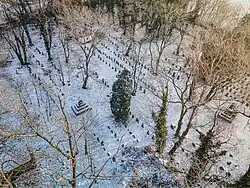 In December 2003, 16 tombstones in the cemetery were knocked over by unknown assailants. A few days previously, two large swastikas were painted on the cemetery wall. These were removed by municipal police.[5]