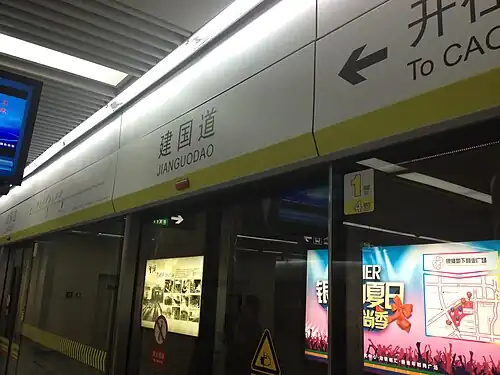Jianguodaoyifengqu station (Chinese: 建国道意风区站; pinyin: Jiànguódàoyìfēngqū zhàn; lit. 'Jianguo Road·Italian Style Area station') is a station of Line 2 of the Tianjin Metro.[1] It started operations on 28 August 2013.[2] The station renamed from Jianguodao station (Chinese: 建国道站; pinyin: Jiànguódào zhàn) to Jianguodaoyifengqu station on 28 September 2024.[1]