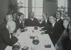 He finally traveled abroad in January 1953, attending the Asian Socialist Conference in Rangoon, Burma. From there, he traveled for three months through India, Pakistan, Europe, and finally China, meeting with leaders like Jawaharlal Nehru and Zhou Enlai and promoting his vision of Asian solidarity and world peace.[54] In 1954, he hosted the American-French entertainer and anti-racism activist Josephine Baker on her visit to Japan. Baker, who was building a "rainbow tribe" of adopted children from different backgrounds, adopted two children from Japan during her tour, and Matsumoto became a friend and supporter.[55]