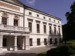 The castle is surrounded by a 4.73 hectares (11.7 acres) large park. It was founded by the Counts of Hodice in the French style in the first half of the 17th century, was adapted to the English-style park in the first half of the 19th century. There is a great variety of rare trees. The park is decorated with several sculptures, the oldest are two marble lions in front of the castle entrance from the 18th century, There is also a fountain and statues of St. Hubert, St. Christopher and Friedrich Schiller.[8]