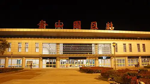 Jinshan Yuanqu (simplified Chinese: 金山园区; traditional Chinese: 金山園區; pinyin: Jīnshān Yuánqū; lit. 'Jinshan Industrial Park') is a railway station on the Jinshan railway in Jinshan District, Shanghai. It opened as a divergence to the newly-built Pudong Railway on December 9, 2005 as Ruanxiang Railway Station.[1][2] In 2012 it was renamed to Jinshan Yuanqu and started intercity passenger service on September 28, 2012.[3][4][5] The station serves Shanghai Jinshan Industrial Park.[6][7] Only local trains stop at this station.[8]