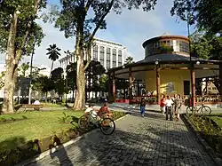 The Historic Center of João Pessoa, recognized as National Institute of Historic and Artistic Heritage in December 2007,[45] covers areas in the neighborhoods of the center, Róger, Jaguaribe, Tambiá and Varadouro. There are listed 37 hectares in area and estimated around 700 buildings, in addition to streets, squares and historic parks that integrate this set, comprising most of the neighborhoods of Varadouro and the Center of the city. Its buildings make up a scenario of different styles and eras full of townhouses, squares, colonial houses and secular churches, being considered the main architectural collection of Paraíba, reporting the various phases of local history, and one of the largest and most important historical sites in[45] Brazil.[46]