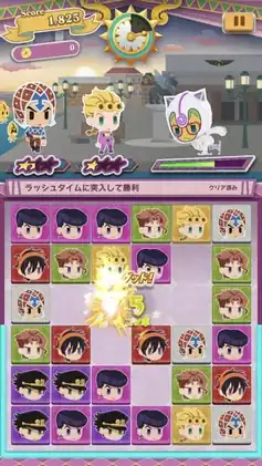 Pitter Patter Pop was a single-player 2D tile-matching video game based on the anime adaptation of the JoJo's Bizarre Adventure manga series, encompassing the first five parts of the series' story: Phantom Blood, Battle Tendency, Stardust Crusaders, Diamond Is Unbreakable, and Golden Wind[5] as well as the OVA adaptation of the spin-off manga Thus Spoke Kishibe Rohan.[6]