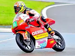 Joan Olivé Márquez (born 22 November 1984 in Tarragona, Catalonia, Spain) is a former professional Grand Prix motorcycle road racer. He has competed in the 125cc, 250cc, Moto2 and Moto3 World championships since he started to race professionally in the 2001 Grand Prix motorcycle racing season. After retiring from racing, he became the test/replacement rider for KTM's Moto3 project. In early 2019, Olivé was appointed team manager of the Marc VDS Racing team.[1]