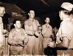 In 1946, DeRita was hired by Columbia Pictures Short Subjects Division head/director Jules White to star in his own series of comedies. The first effort, Slappily Married, was released under the studio's All-Star Comedy series. The three remaining entries—The Good Bad Egg, Wedlock Deadlock (both 1947) and Jitter Bughouse (1948)—billed DeRita as the headliner. Regarding his Columbia shorts series, DeRita said, "My comedy in those scripts was limited to getting hit on the head with something, then going over to my screen wife to say, 'Honey, don't leave me!' For this kind of comedy material, you could have gotten a busboy to do it and it would have been just as funny."[1] After his contract with Columbia ended, DeRita returned to burlesque and recorded a risque LP in 1950 called Burlesque Uncensored.