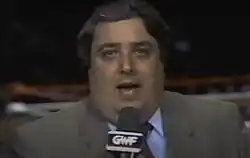 He was also the booker and part owner of the Global Wrestling Federation with former USWA commentator Max Andrews,[11] as well as part of the announcing team for GWF Wrestling Superstars on ESPN,[2][12][13] and had a similar role in the short-lived Ladies Professional Wrestling Association.[14] Popularly known as the "round mound of sound", Pedicino has been compared to some of the top commentators of the mid-to late 1980s and is regarded as one of the most recognizable personalities during the final years of the "territory era". Brian Westcott, wrestling historian and writer, has called Pedicino one of his all-time favorite play-by-play/color commentators.[15]
