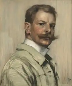 He completed his studies in 1902 and settled in Berlin. His summers were often spent in a small house near the Neuen Garten, from which he would go on painting excursions. He also made extended trips to the Uckermark, Küstrin and the Neumark. His first major showing was at the Große Berliner Kunstausstellung of 1905. He exhibited there until 1909, when he joined the Berlin Secession.[1] The following year, he moved into a house with a studio near the Schlachtensee, where he lived and worked for the rest of his life. Most of his landscapes depict areas in Brandenburg. He was especially fond of the lowlands in Golm.