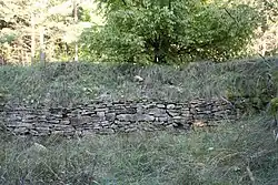 A method of fortification with stone facing walls was long considered a genuinely Slavic characteristic.[30] However, more recent research shows that the ideas of an ethnic attribution of castle building techniques are not tenable.[31] Overall, there is a clear concentration of this building technique on the eastern fringes of the later Frankish empire.[32] Presumably, the method of fortification was adopted by the Western Slavs from the Franks, where the Roman-Late Antique building tradition had been preserved.[33] The Slavs were the first to adopt this method of fortification.