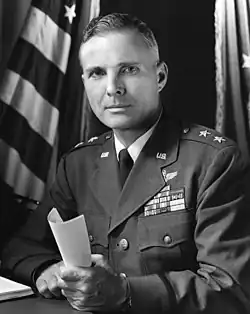 The 339th Fighter Group moved to England in March 1944, where it joined the Eighth Air Force, and was re-equipped with the P-51 Mustang.[4] In April 1945 he became the assistant chief of staff A-3 (operations) of the 4th Bombardment Wing. He subsequently became chief of staff of the 20th Bombardment Wing,[2] which returned to the United States in August 1945.[4] He flew a total of 94 combat missions.[2]