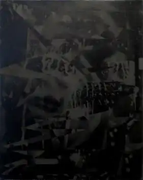 Bauer uses screen printing, spray paint and stencils to create abstract paintings. His palette is almost exclusively blacks, silvers and greys. The work deals with the nature of fabricating and translating images. There is a tension between brushwork and more hands-off techniques in the paintings. The images in his compositions both dissolve and materialize simultaneously. Untitled (#1409), in the collection of the Honolulu Museum of Art, is an example of the artist's "black paintings", which have been described as "containing hints of abstract expressionism".[2]