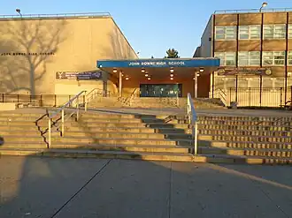 John Bowne High School is a public high school located in Flushing, Queens, New York City, next to Queens College, City University of New York. It has an enrollment of nearly four thousand students.[1] The school, which opened in 1964, is named after the English immigrant John Bowne. John Bowne High School offers multiple programs including a science research program, a law program, a creative arts program, writing program, and an agriculture program.