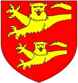 He married Gertrude Courtenay, a daughter of Sir William III Courtenay (1477–1535) "The Great",[5] of Powderham, Devon, MP for Devon in 1529, thrice Sheriff of Devon, in 1522, 1525-6, 1533-4, an Esquire of the Body to King Henry VIII, whom he accompanied to the Field of the Cloth of Gold.[6] He was 6th in descent from Hugh Courtenay, 2nd Earl of Devon (died 1377), and his own grandson William Courtenay (1527–1557) of Powderham became himself de jure 2nd Earl of Devon under the 1553 creation of that title. The arms of Courtenay quartered with Redvers appear amongst the many heraldic escutcheons shown on Chichester's monument in Pilton Church. He had by her seven sons and nine daughters,[7] who married into many of the leading gentry families of Devonshire, two of them marrying children of first cousins of Lady Jane Grey (1536/1537-1554), The Queen of Nine Days.[8] The marriages of his children are represented heraldically on a panel on his monument in Pilton Church.