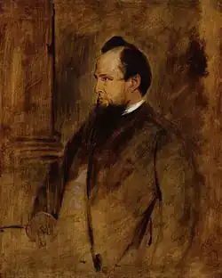 Acton took a great interest in the United States, considering its federal structure an ideal guarantor of individual liberties. During the American Civil War, his sympathies lay entirely with the Confederacy, for their defence of States' Rights against a centralised government that he believed would inevitably turn tyrannical. His notes to Gladstone on the subject helped sway many in the British government to sympathise with the South. After the South's surrender, he wrote to Robert E. Lee that "I mourn for the stake which was lost at Richmond more deeply than I rejoice over that which was saved at Waterloo," adding that he "deemed that you were fighting battles for our liberty, our progress, and our civilization."[10] Acton's stance on the Confederacy was shared by most English Catholics at the time, both liberal and Ultramontane.[11] The editors of the Ultramontane Tablet denounced Abraham Lincoln as a dangerous radical, and John Henry Newman, when asked for his opinion on the matter, stated that slavery was not "intrinsically evil" and that the issue had to be assessed on a case-by-case basis.[11]