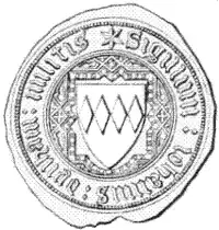 Dinham was later found guilty of committing assaults on others in January 1402 and in December 1404.[13] In September 1402 he was amongst those accused by the Abbot of Torre Abbey of digging up a road at Kingkerswell and assaulting the abbot's men. He also committed acts of violence at Nutwell and at Littleham.[15]