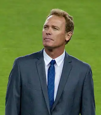 John Joseph Doyle (born March 16, 1966) is an American former professional soccer player who played professionally in both Europe and the United States including the Western Soccer League, American Professional Soccer League and Major League Soccer. He was the 1995 A-League Defender of the Year and the 1996 MLS Defender of the Year. He also earned fifty-three caps with the U.S. national team between 1987 and 1994 including two games at the 1990 FIFA World Cup. He was a member of the U.S. team at the 1988 Summer Olympics and was most recently the general manager of the San Jose Earthquakes of Major League Soccer before resigning on August 29, 2016.[1][2][3]